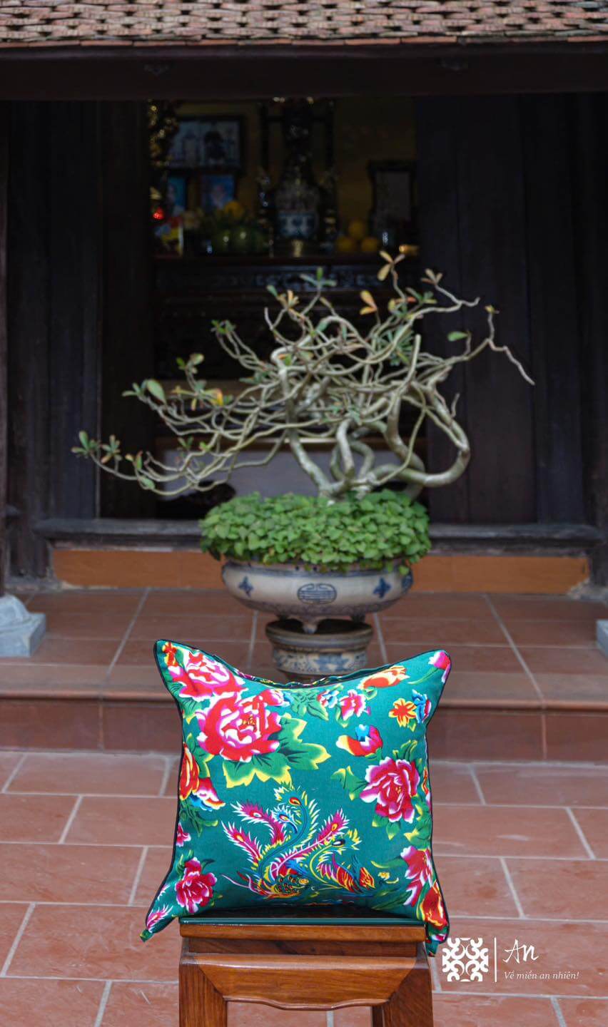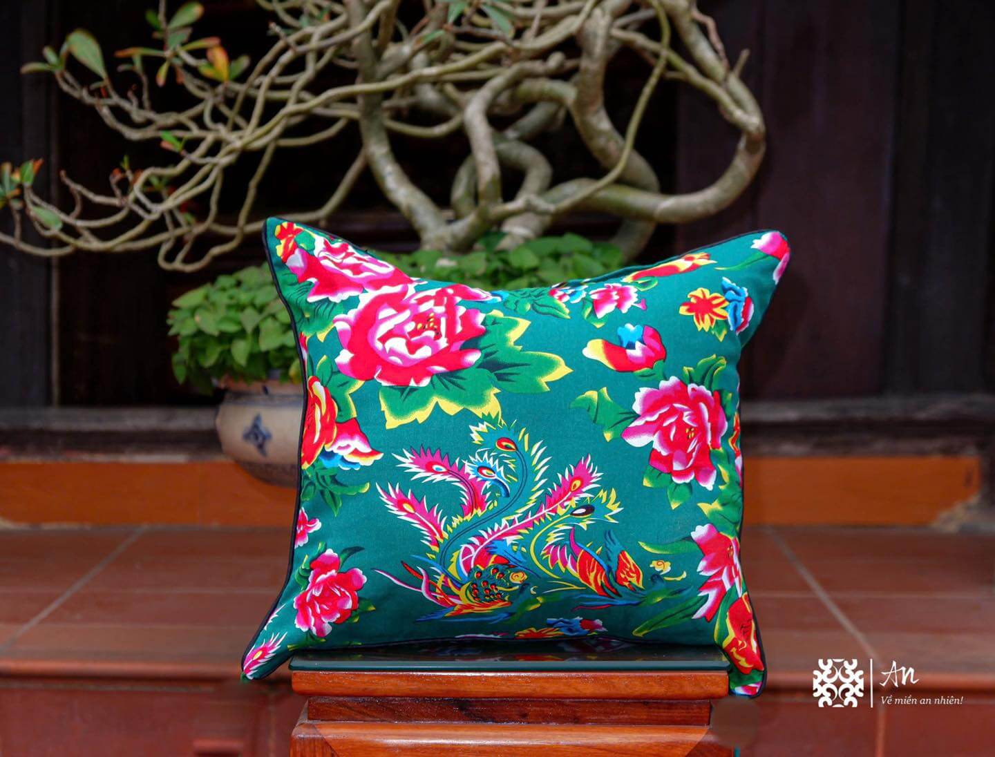 DẤU ẤN CỦA THỜI GIAN: GỐI VUÔNG HOẠ TIẾT CON CÔNG X BÔNG GẠO