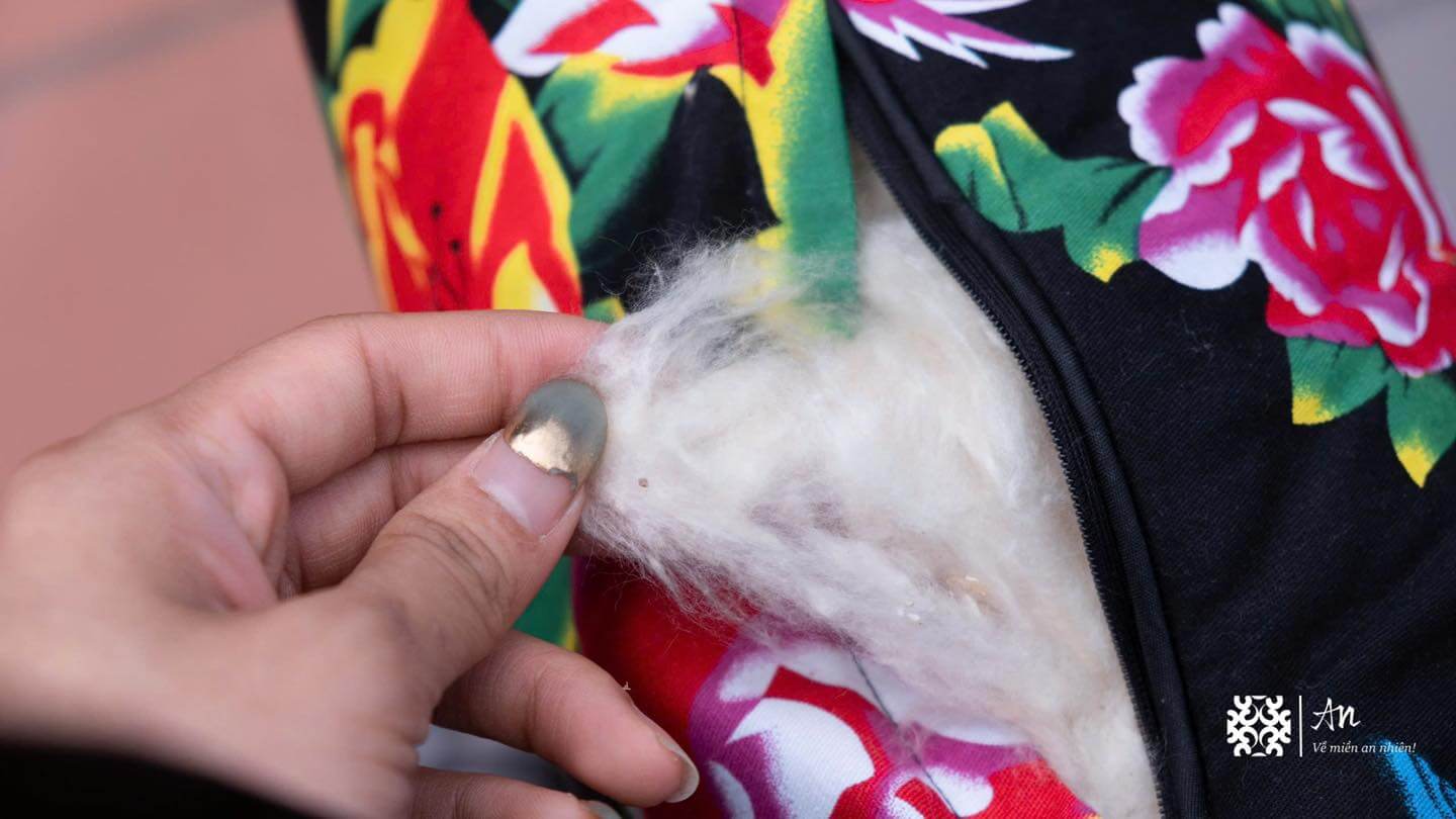 Bên cạnh đó, bông từ quả gạo kết hợp với vải cotton 100% còn là cách mà chúng mình kết nối với thiên nhiên thông qua những chất liệu bền vững.